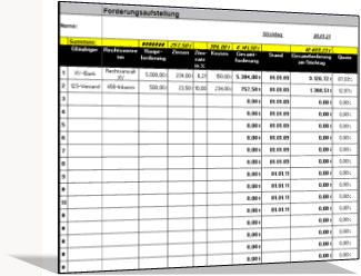 Excel Tabelle, in dem Forderungen